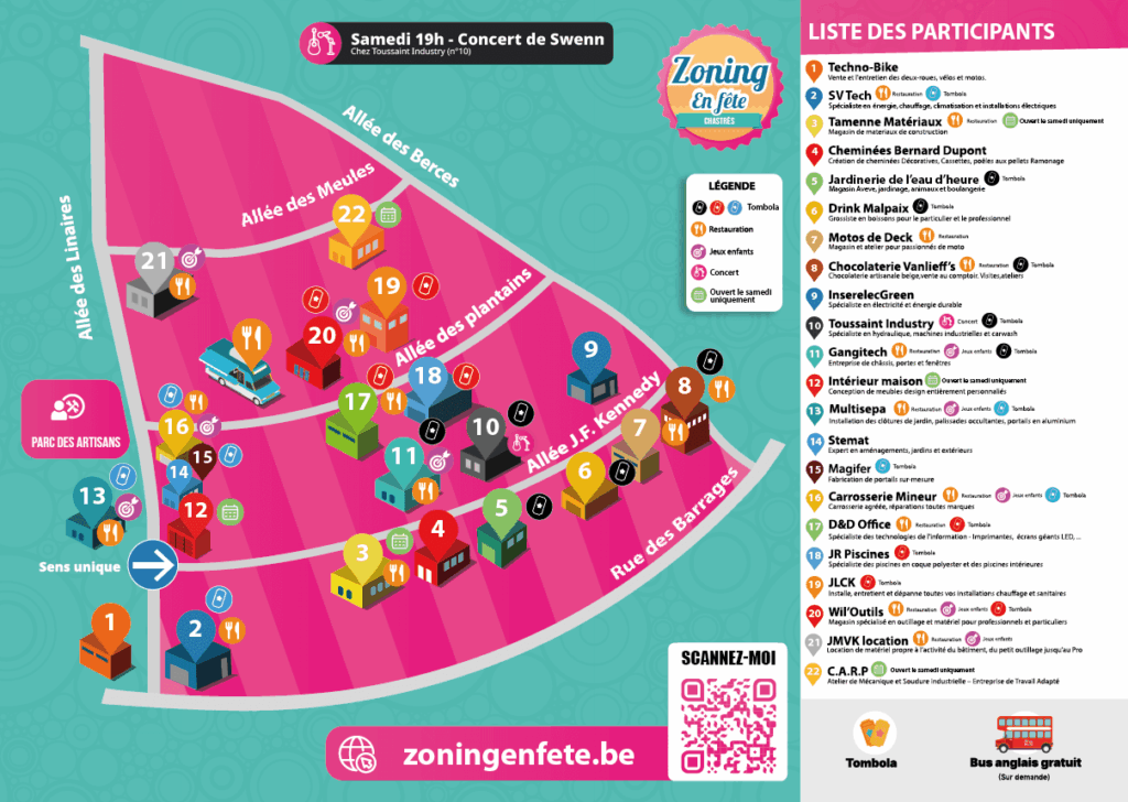 Ne manquez pas cette opportunité de découvrir notre zoning industriel sous un nouveau jour et de passer une journée riche en rencontres et en découvertes. Nous vous attendons nombreux pour célébrer ensemble le dynamisme de notre communauté d’entreprises.